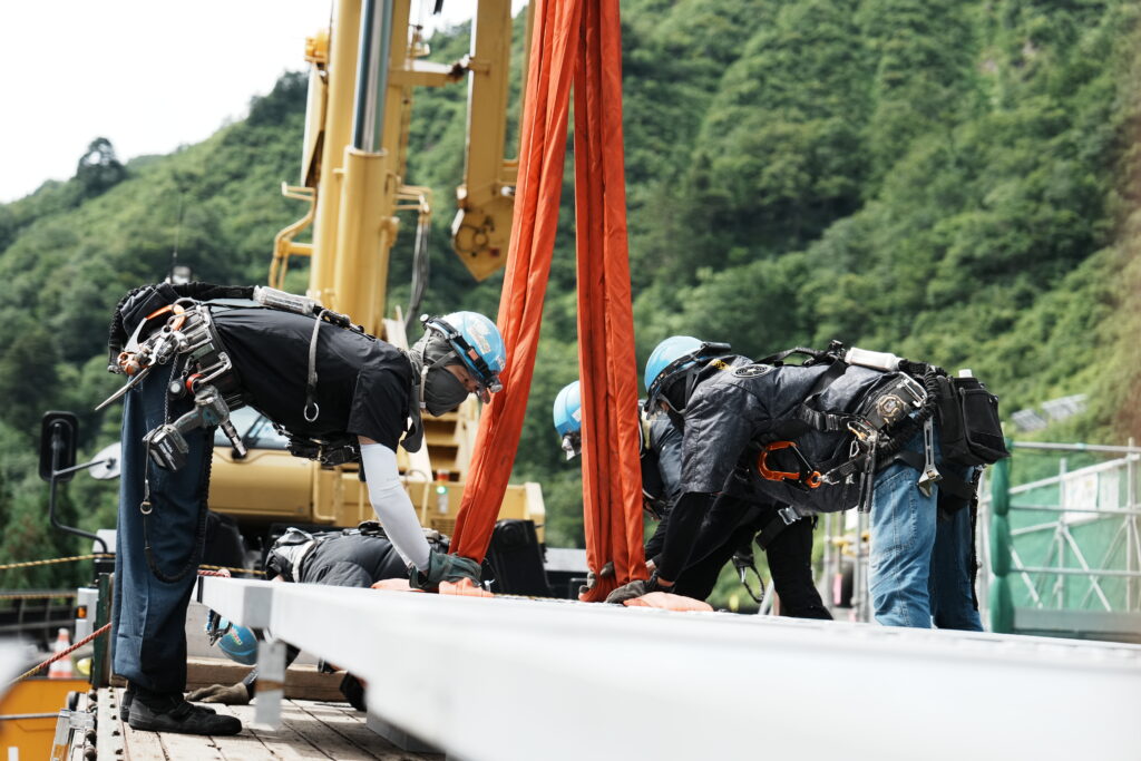現場では、何トンもの耐震補強部材をいくつも取り付け、橋の“強さ”を確実に底上げしていきました。見た目には分からない部分も多いけれど、内部には職人たちの技術と努力がぎゅっと詰まっています。季節が巡る中で、橋が少しずつ“最強の姿”へと変わっていくのを間近で感じられたことは、この現場ならではの大きな喜びでした。