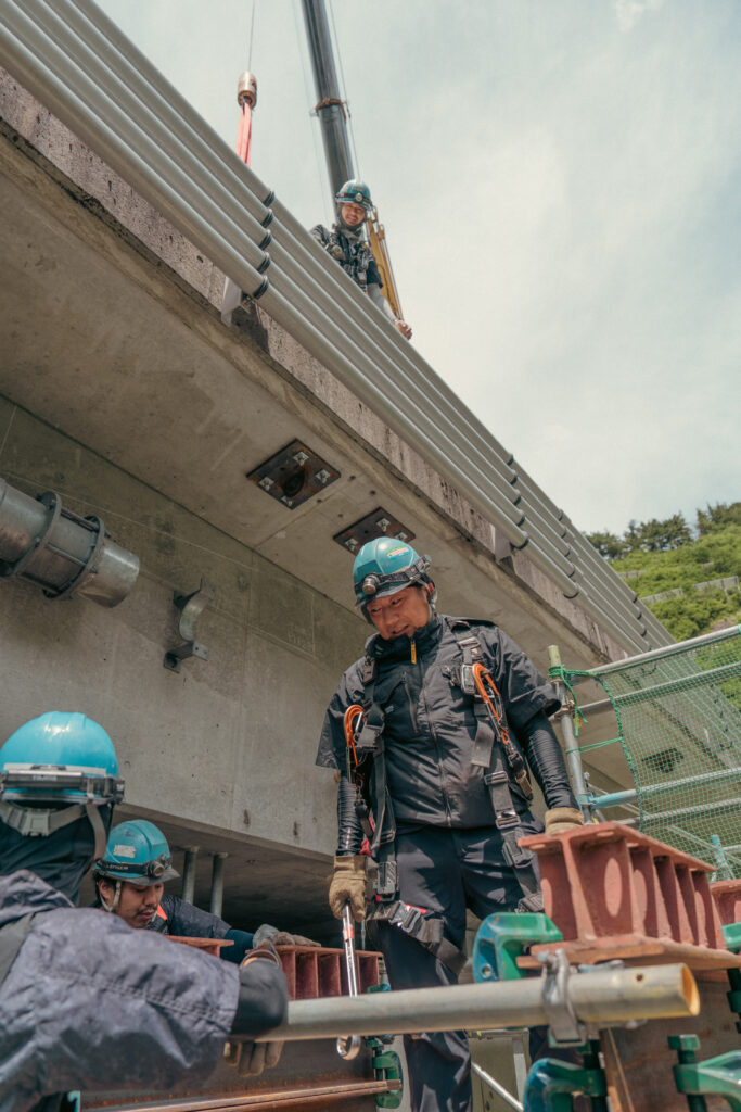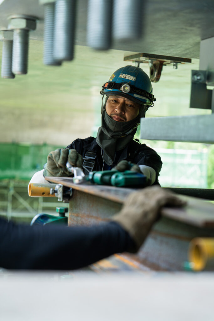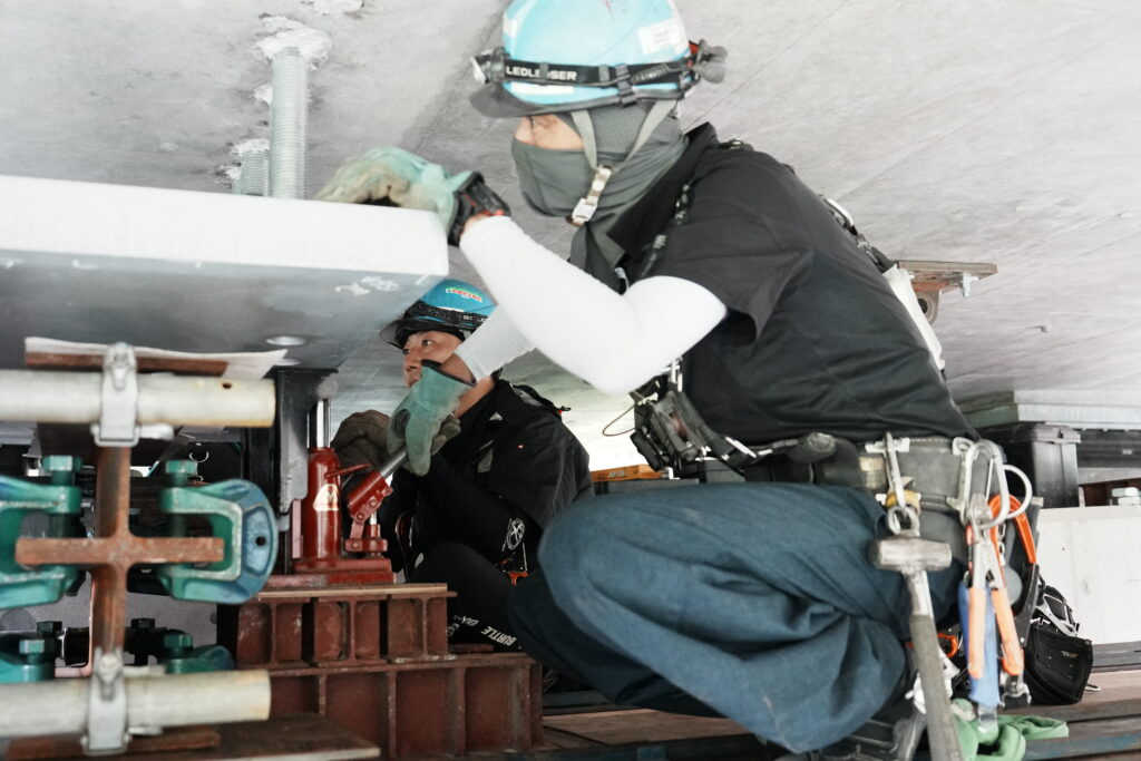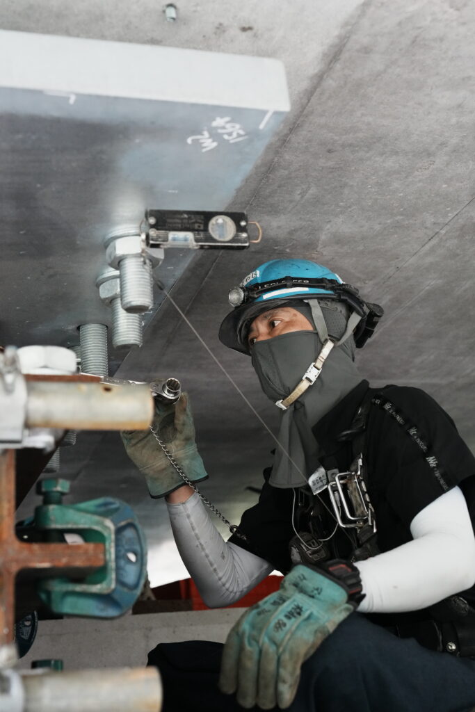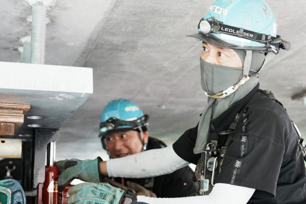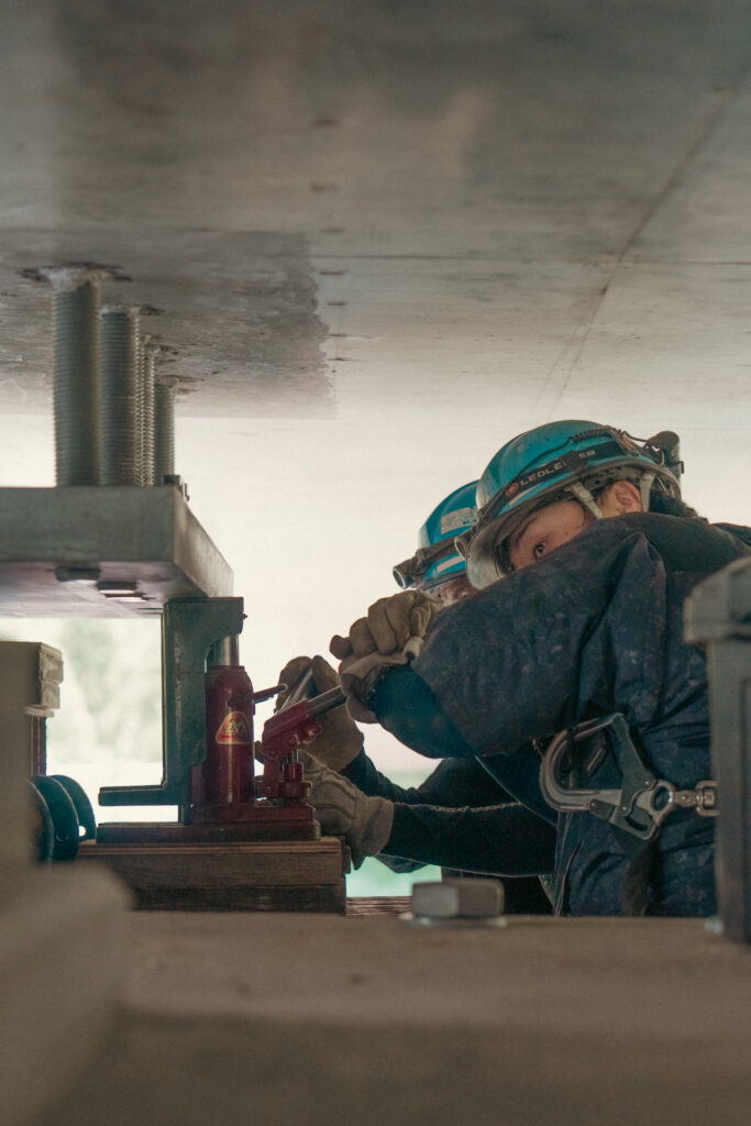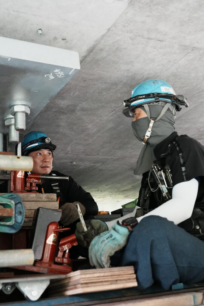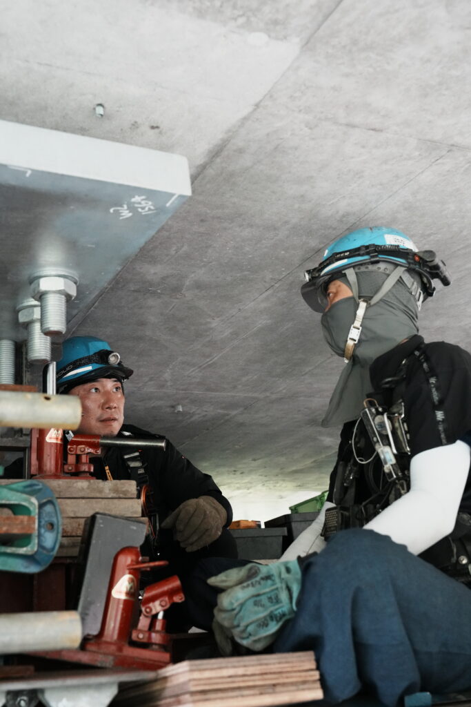 現場では、何トンもの耐震補強部材をいくつも取り付け、橋の“強さ”を確実に底上げしていきました。見た目には分からない部分も多いけれど、内部には職人たちの技術と努力がぎゅっと詰まっています。季節が巡る中で、橋が少しずつ“最強の姿”へと変わっていくのを間近で感じられたことは、この現場ならではの大きな喜びでした。