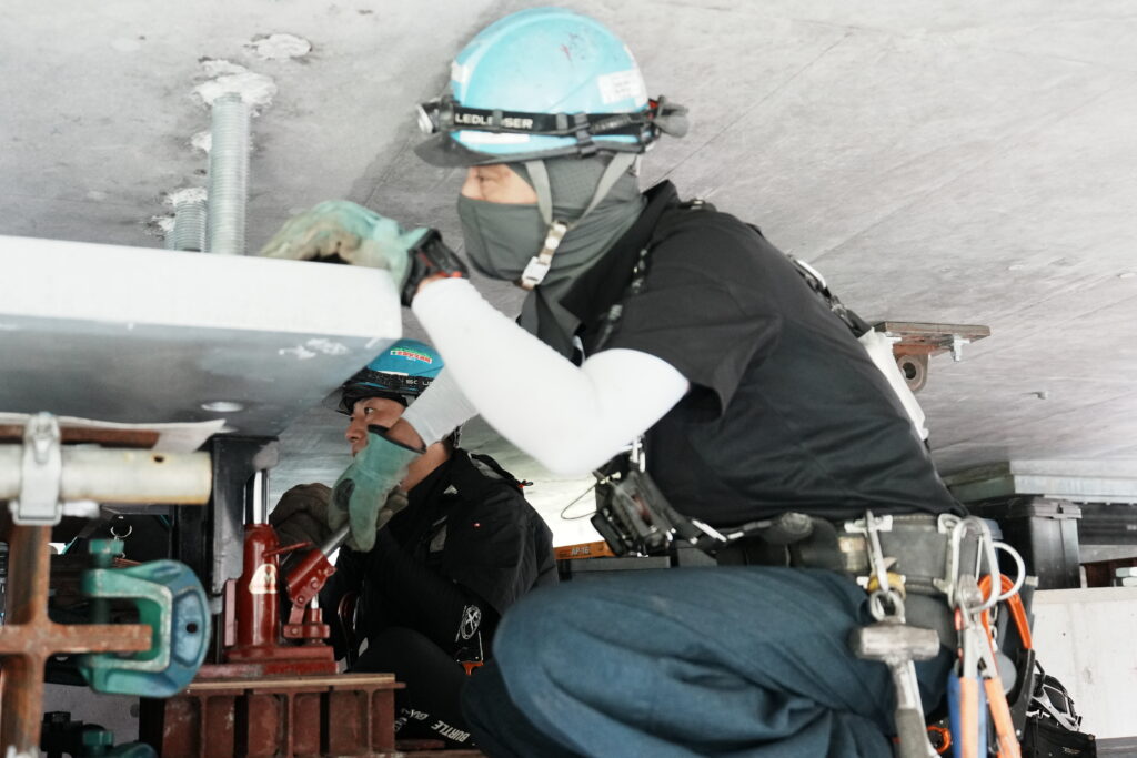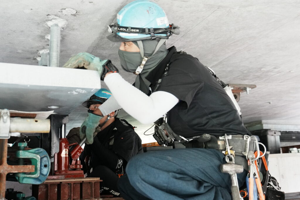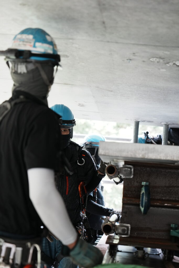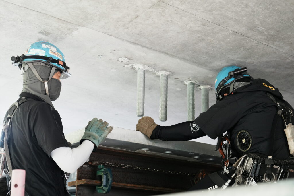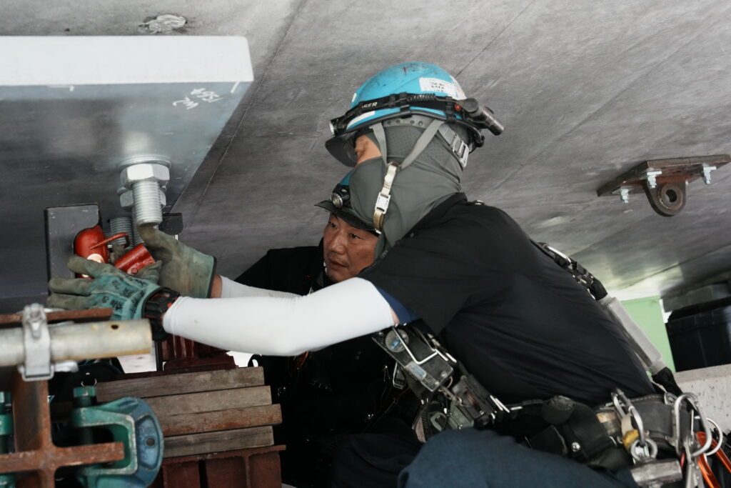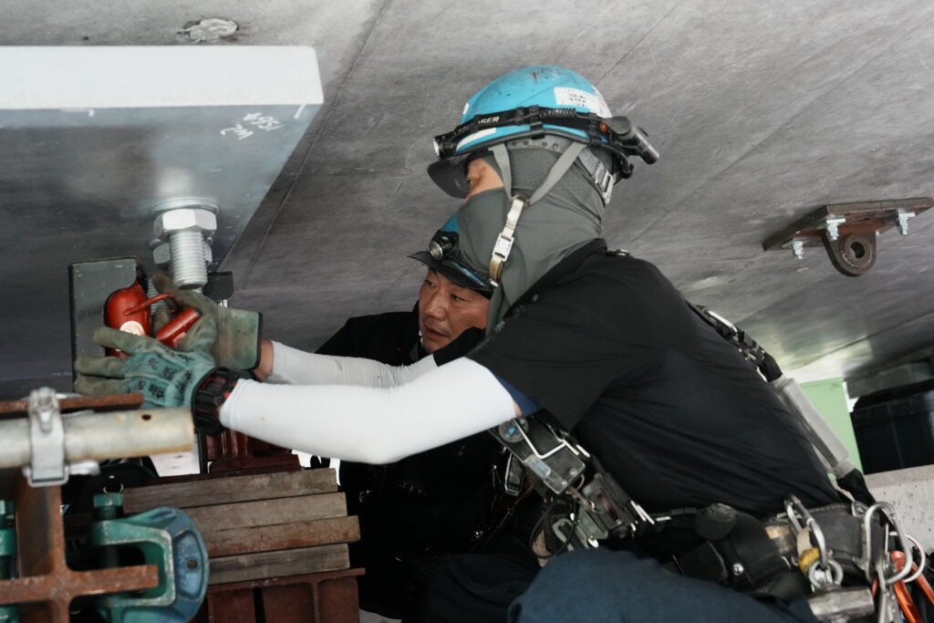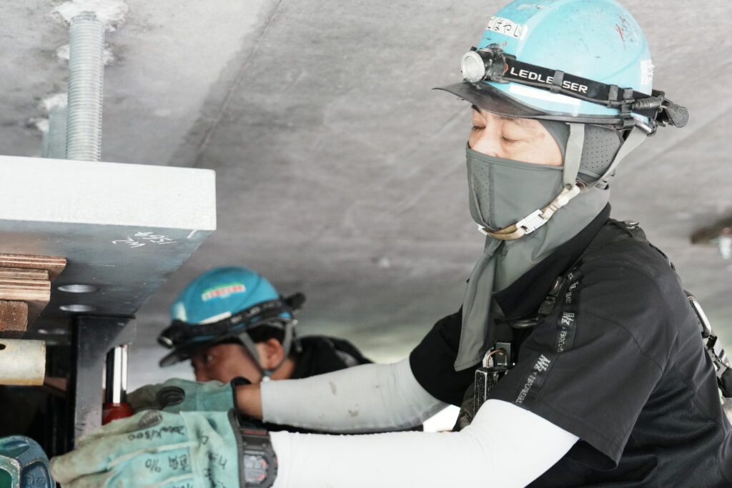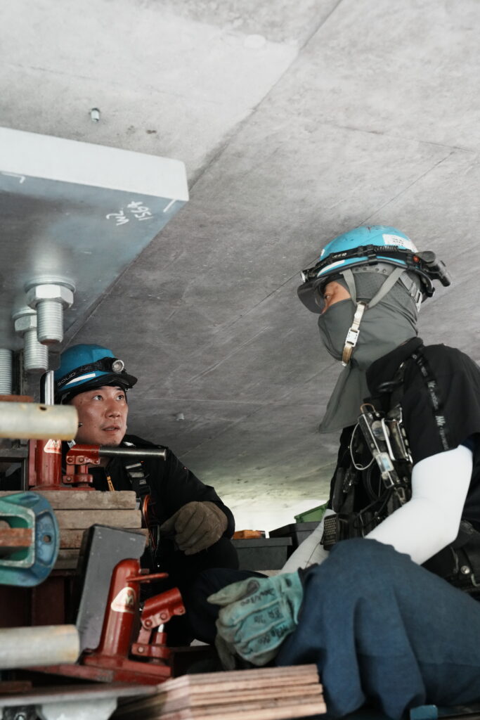 現場では、何トンもの耐震補強部材をいくつも取り付け、橋の“強さ”を確実に底上げしていきました。見た目には分からない部分も多いけれど、内部には職人たちの技術と努力がぎゅっと詰まっています。季節が巡る中で、橋が少しずつ“最強の姿”へと変わっていくのを間近で感じられたことは、この現場ならではの大きな喜びでした。