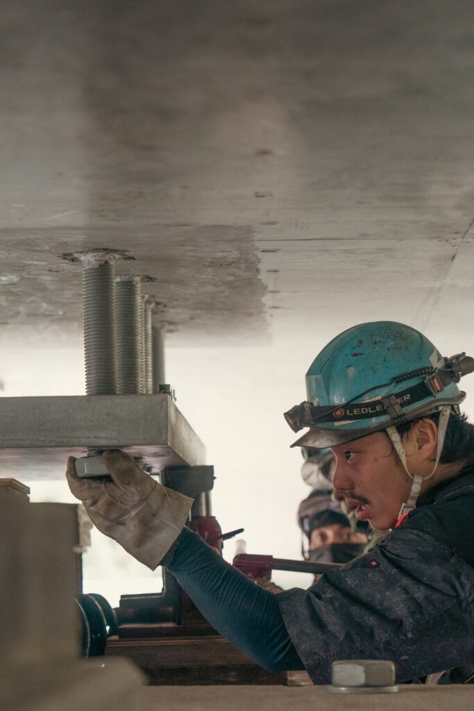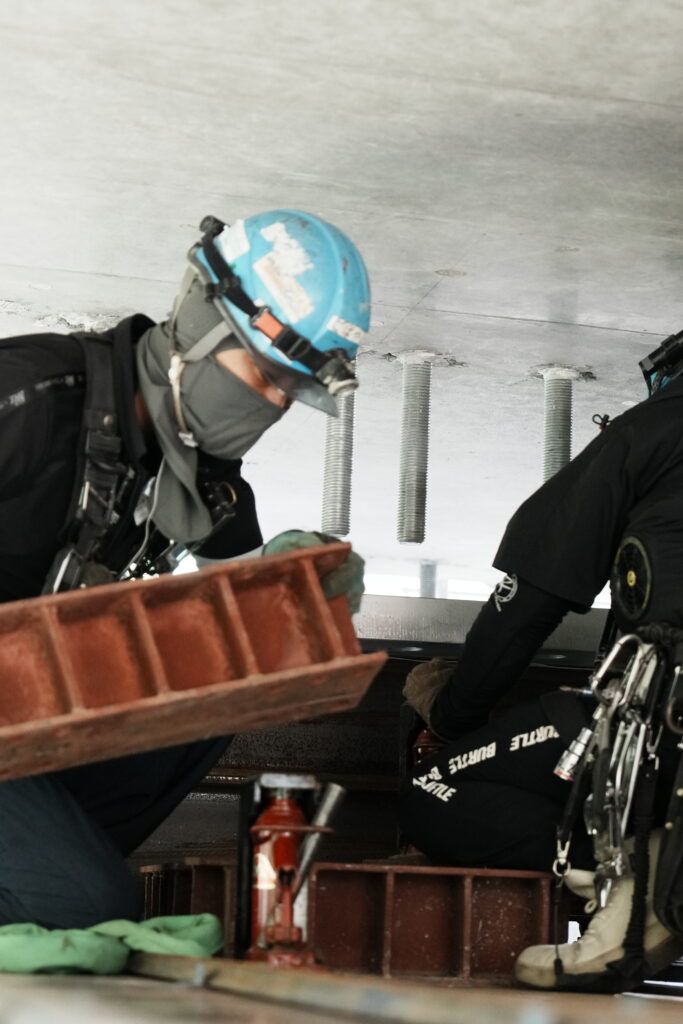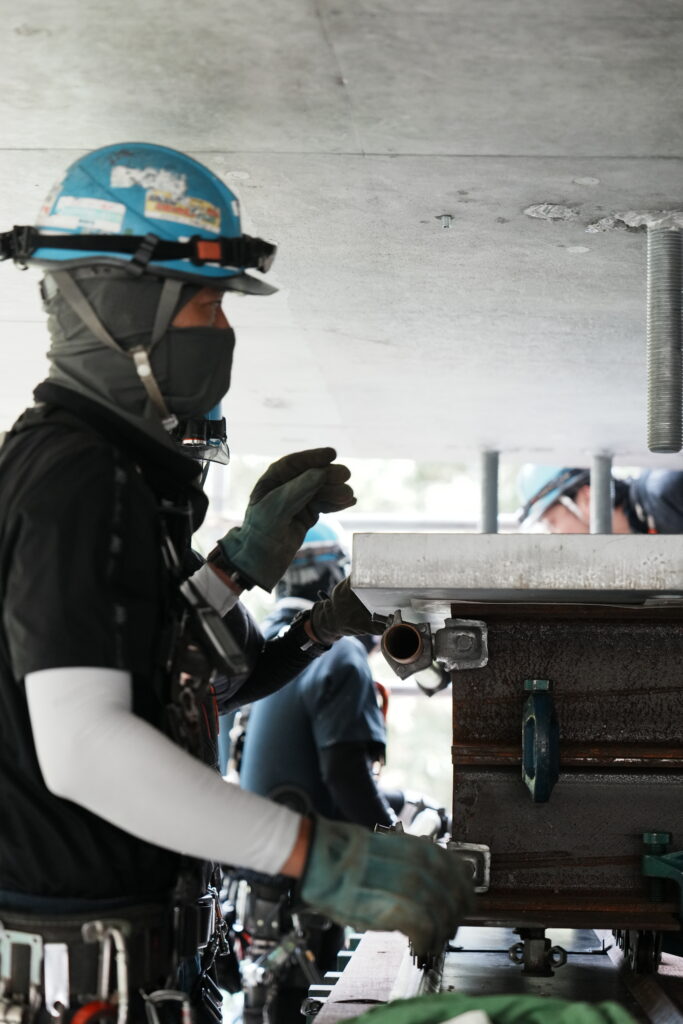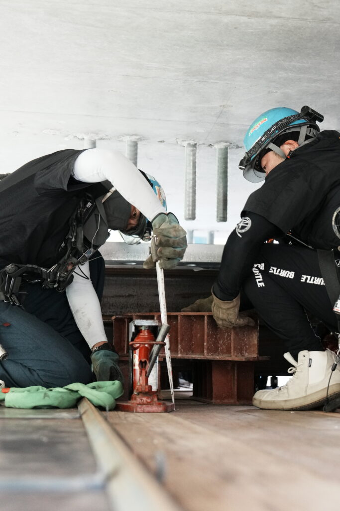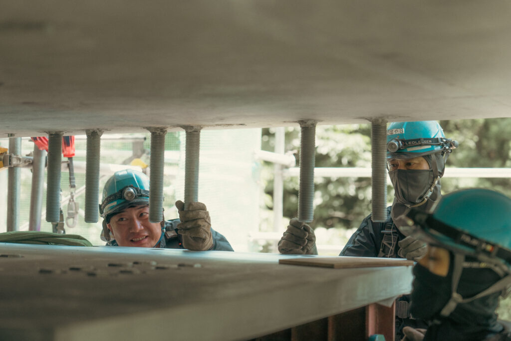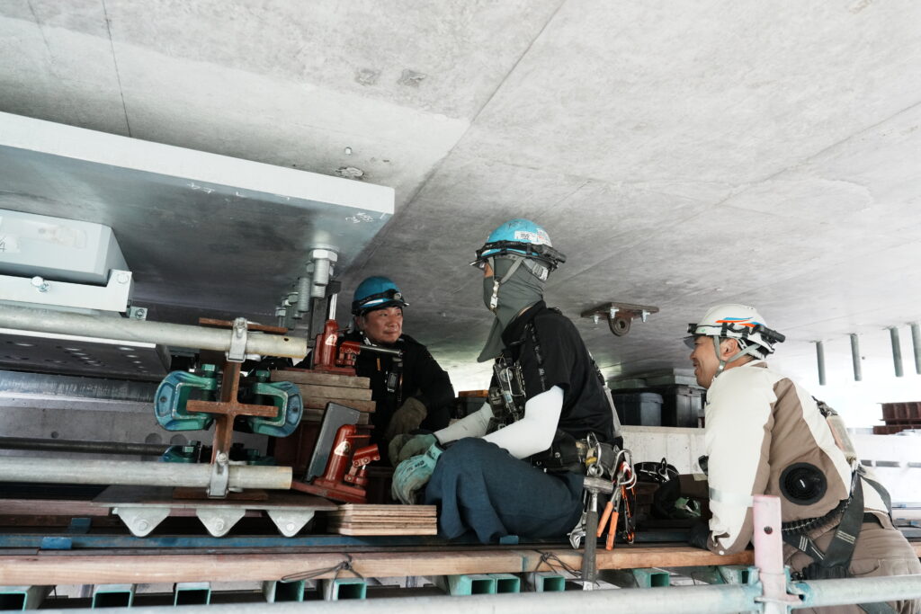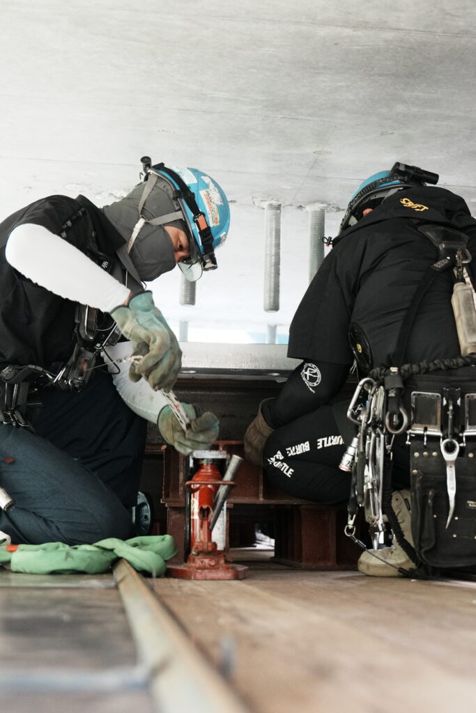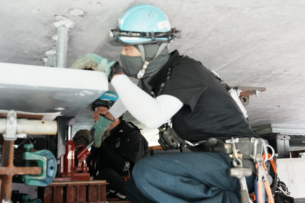 現場では、何トンもの耐震補強部材をいくつも取り付け、橋の“強さ”を確実に底上げしていきました。見た目には分からない部分も多いけれど、内部には職人たちの技術と努力がぎゅっと詰まっています。季節が巡る中で、橋が少しずつ“最強の姿”へと変わっていくのを間近で感じられたことは、この現場ならではの大きな喜びでした。