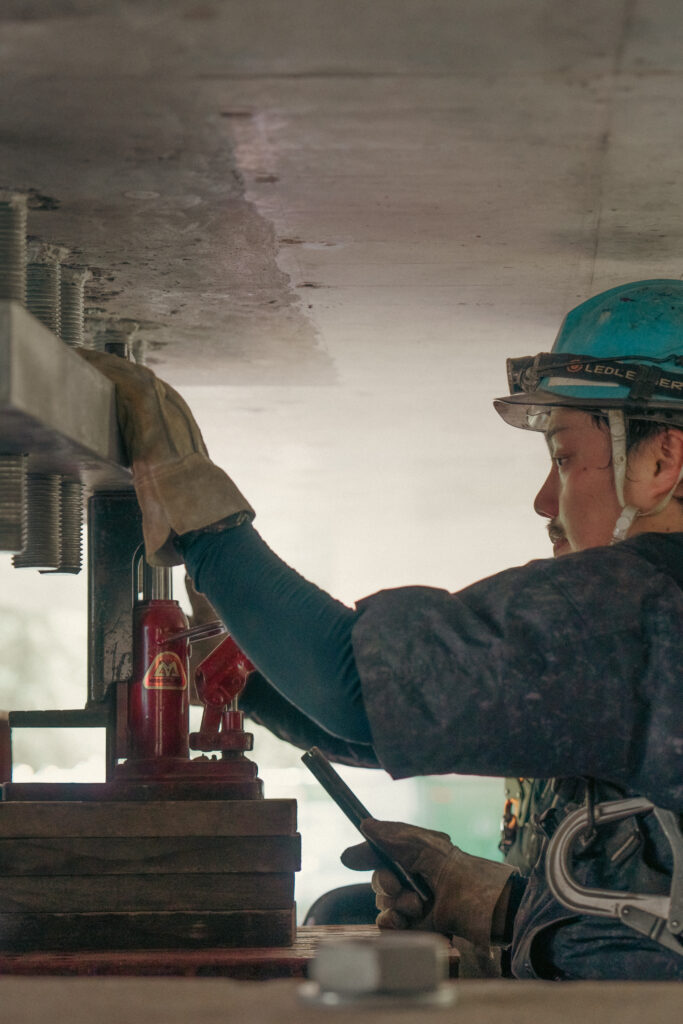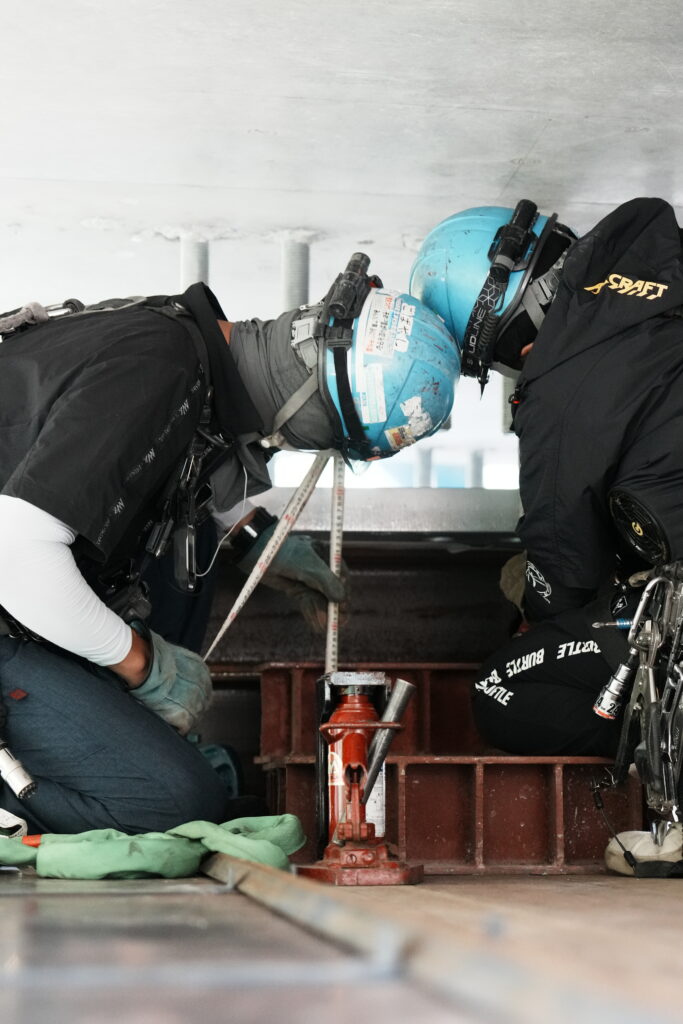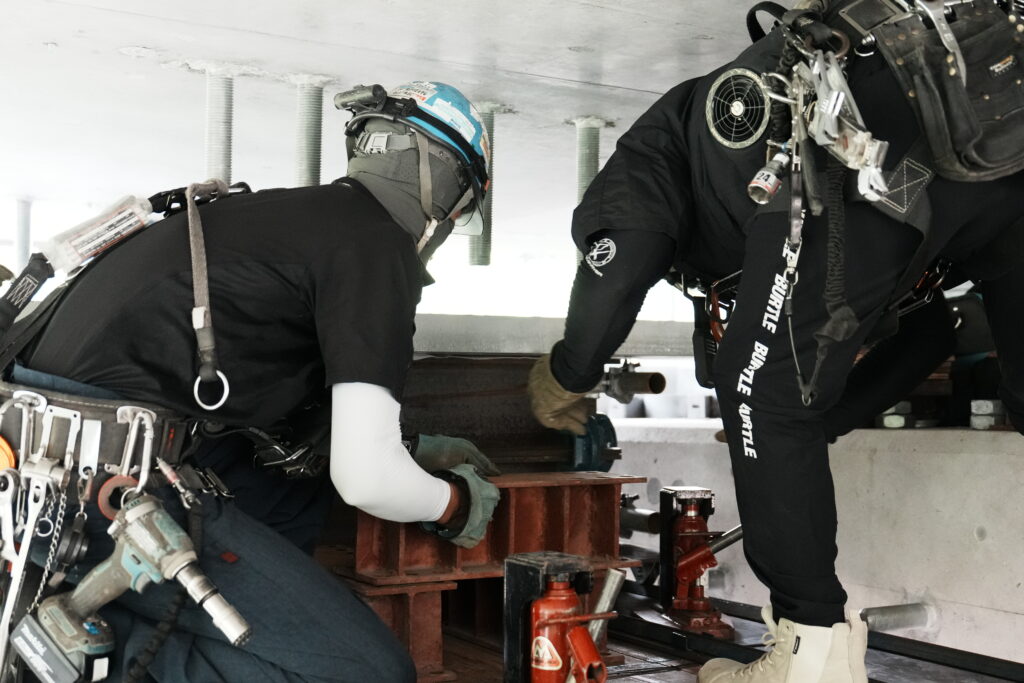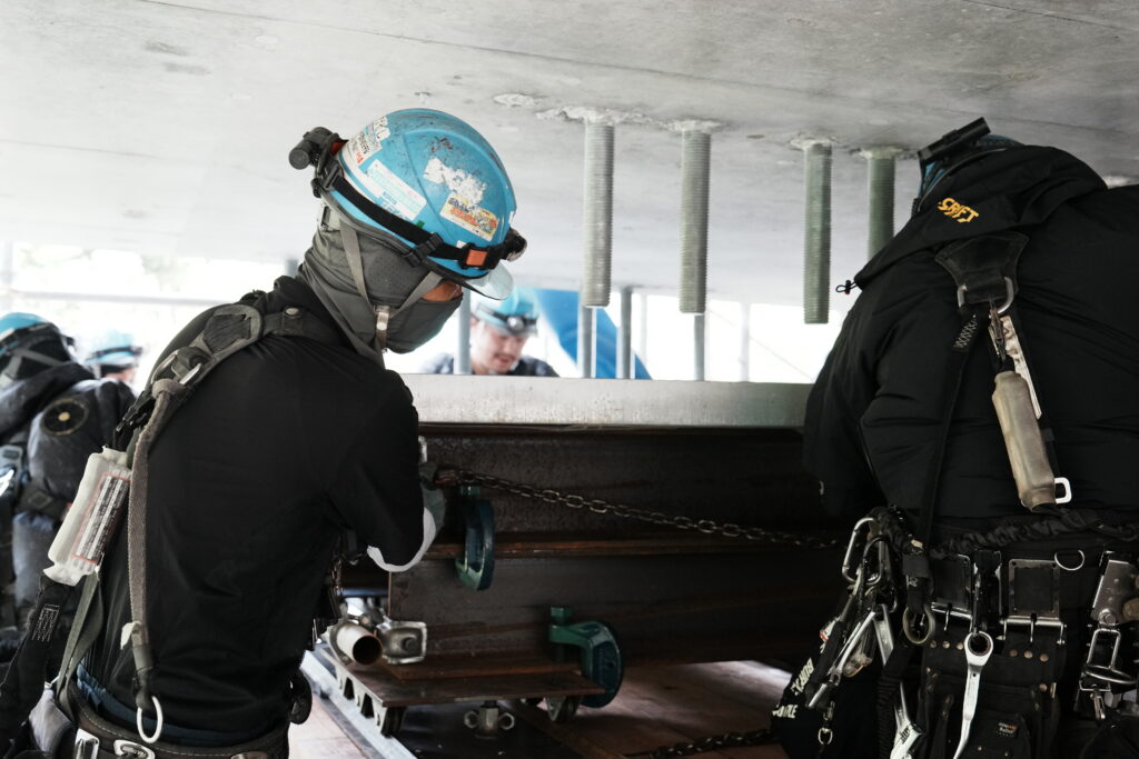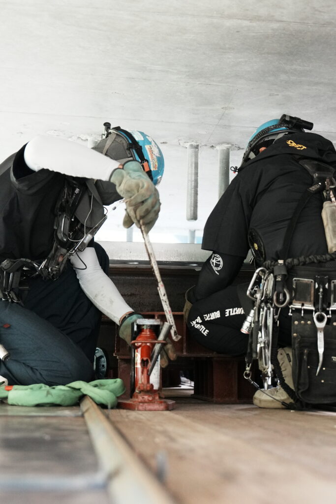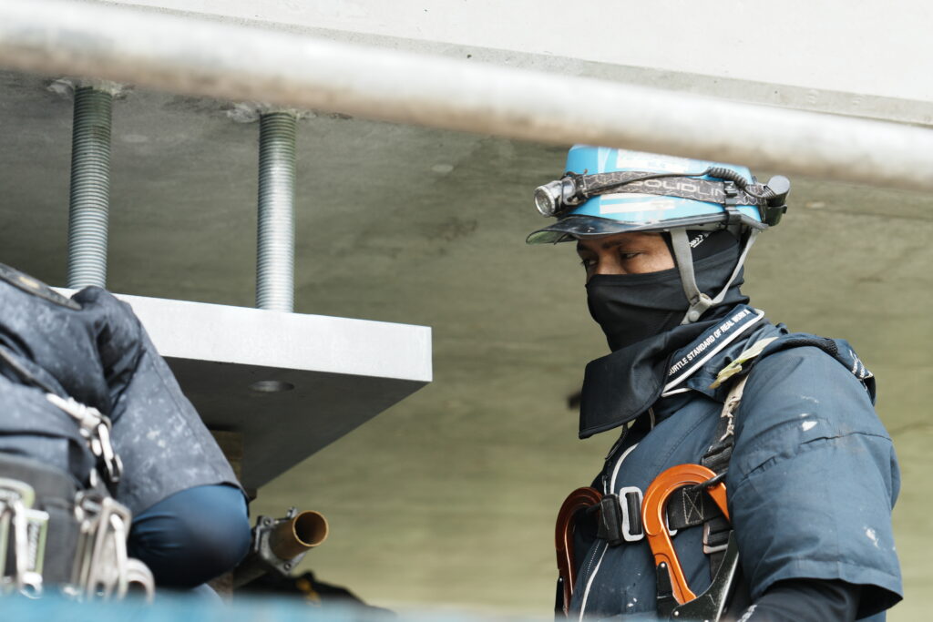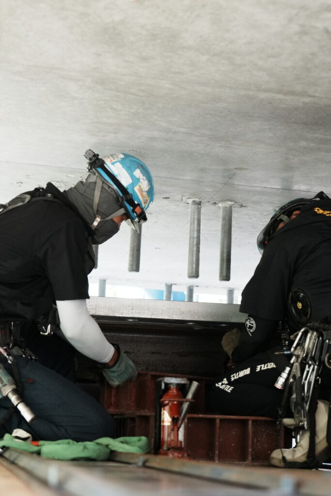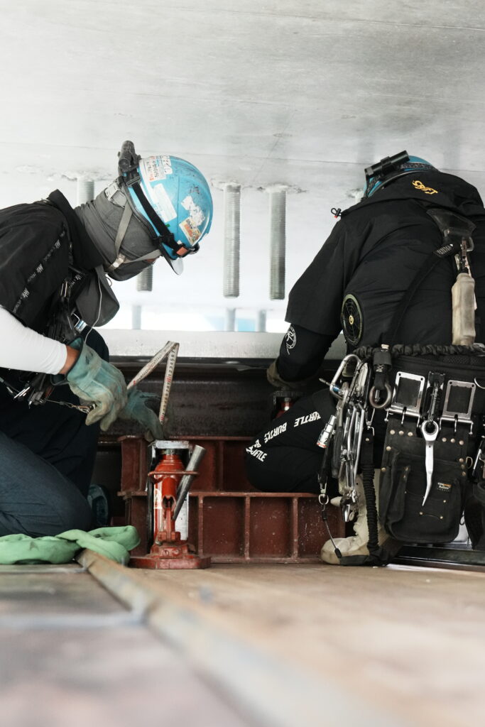 現場では、何トンもの耐震補強部材をいくつも取り付け、橋の“強さ”を確実に底上げしていきました。見た目には分からない部分も多いけれど、内部には職人たちの技術と努力がぎゅっと詰まっています。季節が巡る中で、橋が少しずつ“最強の姿”へと変わっていくのを間近で感じられたことは、この現場ならではの大きな喜びでした。