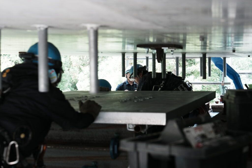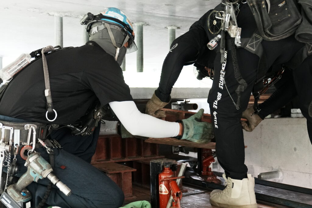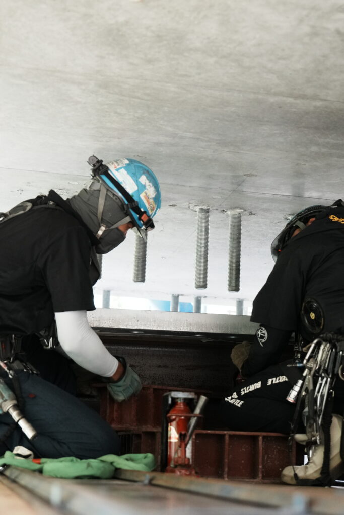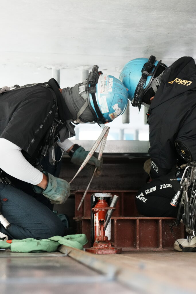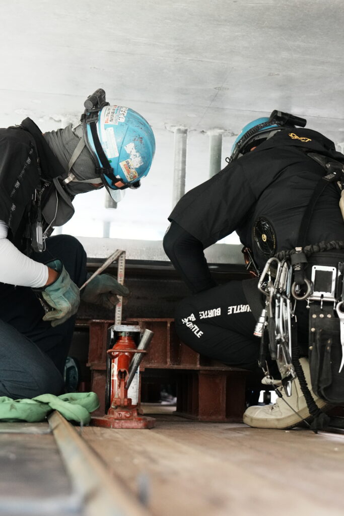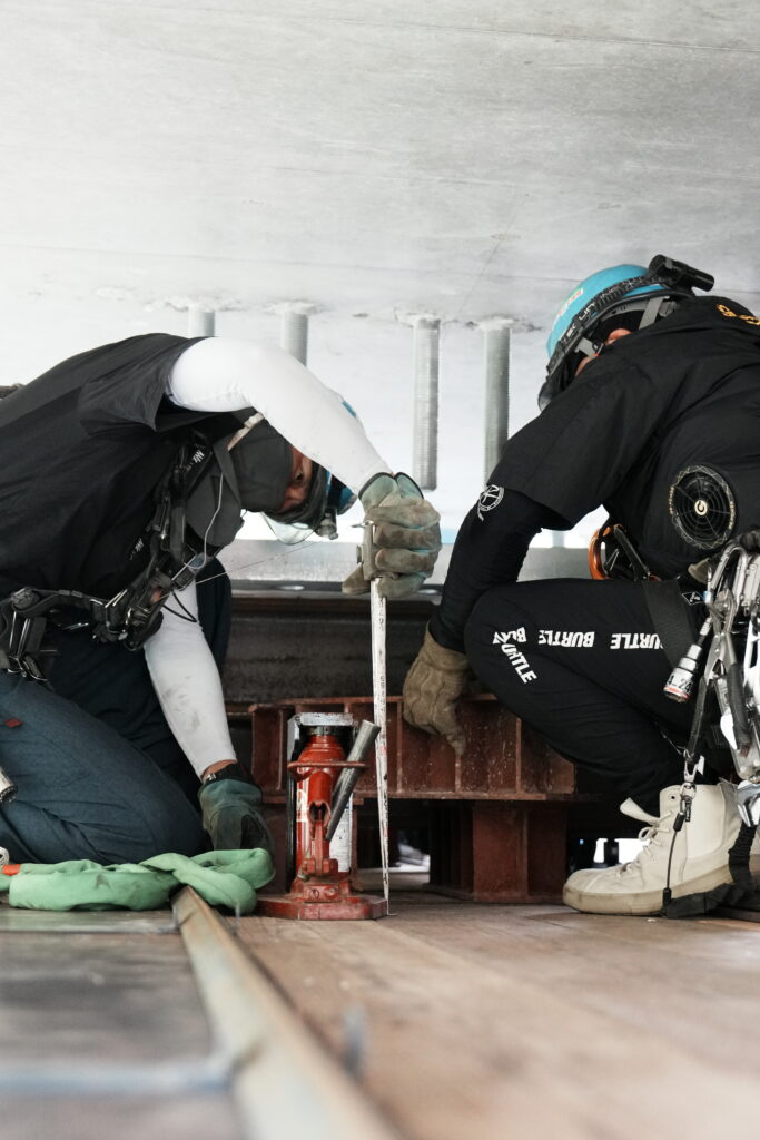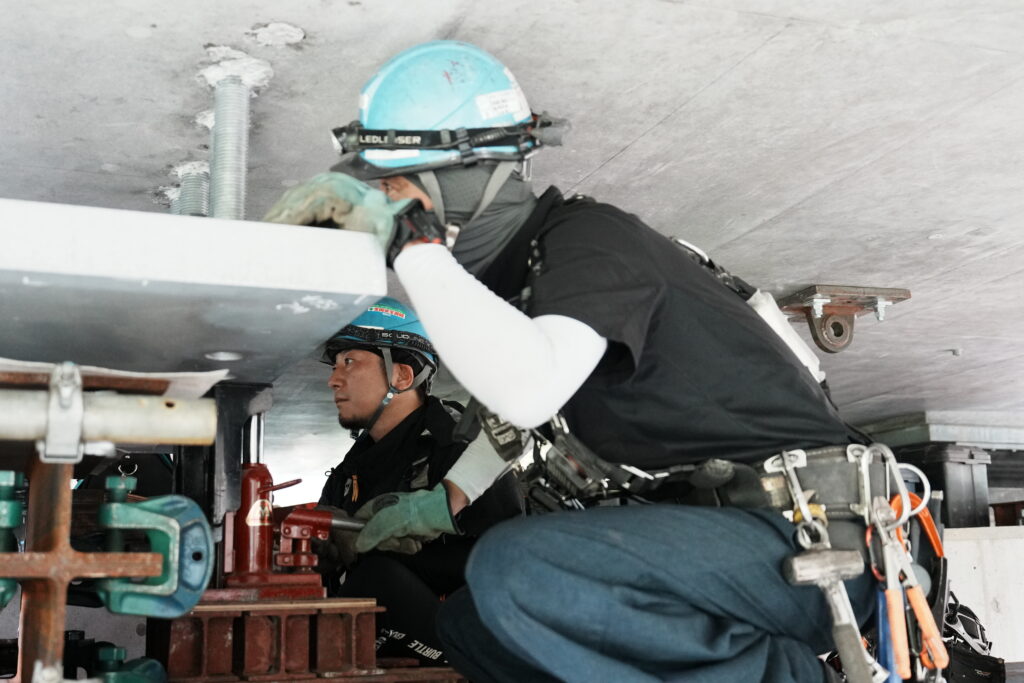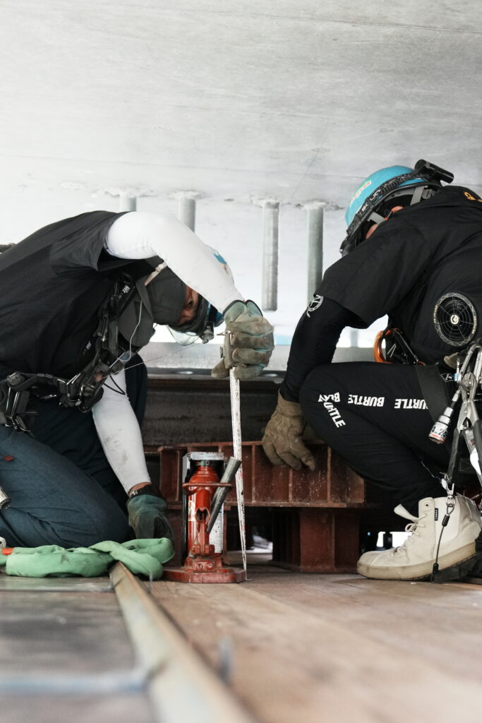 現場では、何トンもの耐震補強部材をいくつも取り付け、橋の“強さ”を確実に底上げしていきました。見た目には分からない部分も多いけれど、内部には職人たちの技術と努力がぎゅっと詰まっています。季節が巡る中で、橋が少しずつ“最強の姿”へと変わっていくのを間近で感じられたことは、この現場ならではの大きな喜びでした。